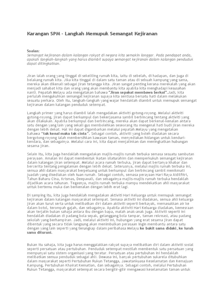 Semangat Kejiranan Contoh Karangan Pmr Spm Pdf