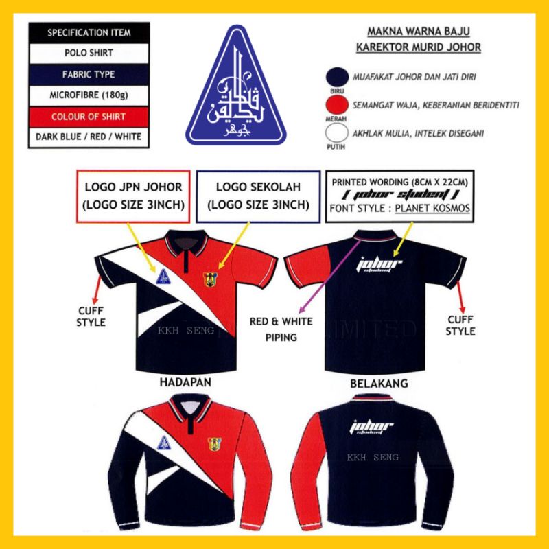 Baju Karektor Johor Krmj Roundneck Sekolah Rendah Dan Menengah Shopee Malaysia