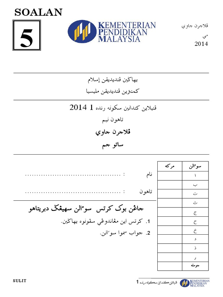 Soalan Jawi Tahun 5 2018